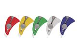 Compact knife with spring-action blade that will retract back into the holder after use for safety. Ideal for opening envelopes, small packages or removing tags. Stainless steel blade. Available in 5 vivid colors.